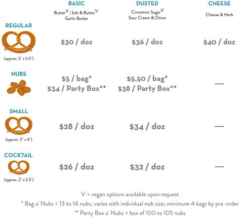 Zwick's hand-rolled soft pretzels are now available by online pre-order, for pickup on Wednesdays and Fridays 10:30AM-6PM from our former storefront located at 12415 107 Ave NW. The storefront is now operated under the name of South Island Pies, and they handle pre-order pickups for us.